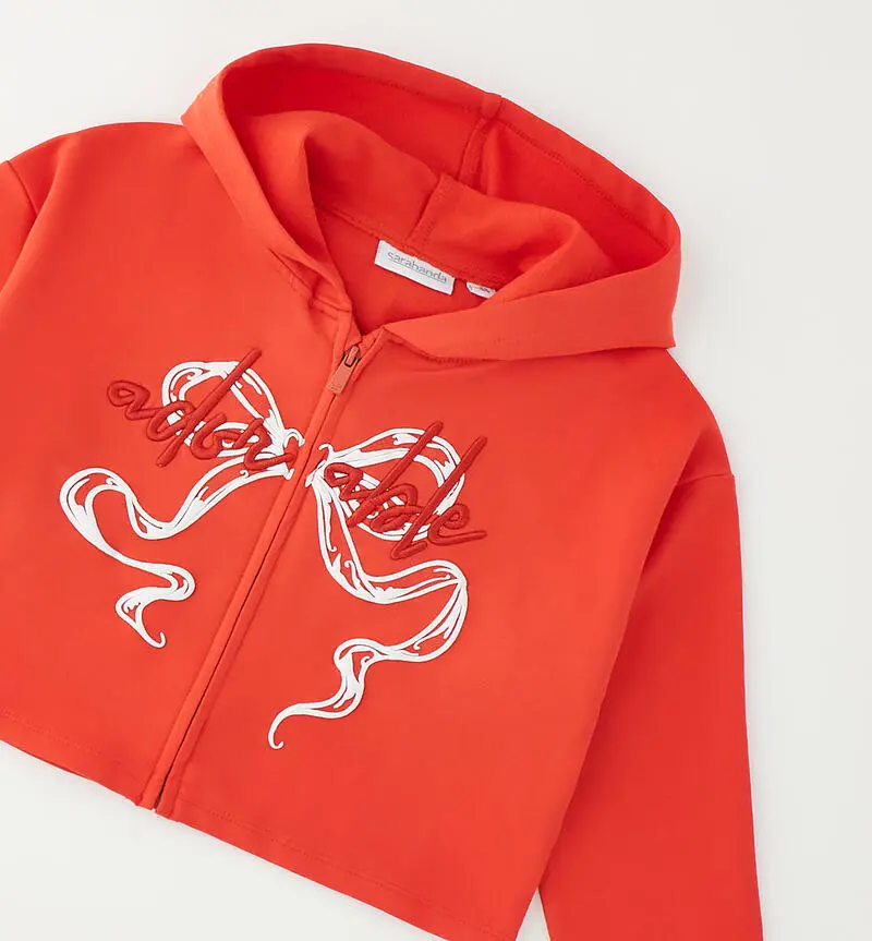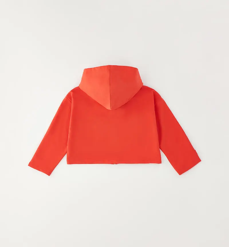 Felpa bambina crop con cappuccio e zip frontale. Modello corto, morbido e confortevole, perfetto per look casual e alla moda.