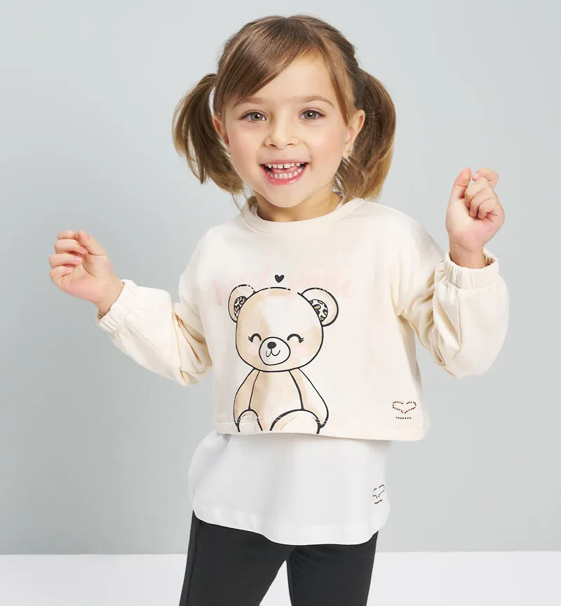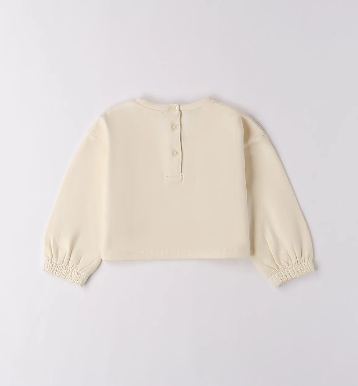 Felpa girocollo bambina, taglio crop. Caldo french terry felpato interno con graziosa stampa. Comoda e trendy.