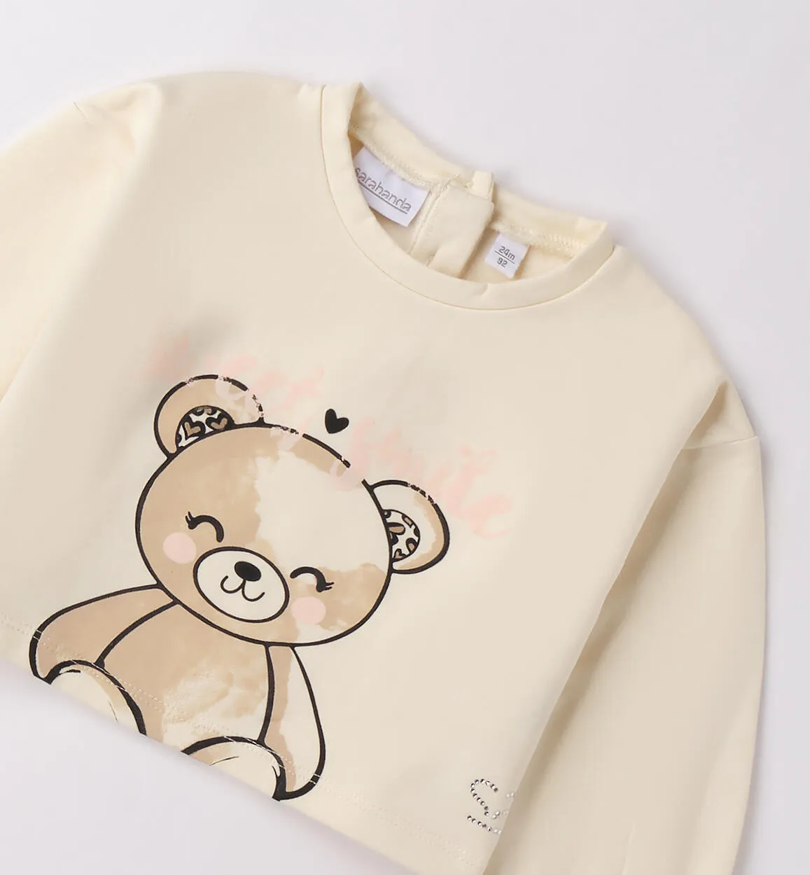 La Felpa girocollo Sarabanda unisce il comfort invernale alle ultime tendenze moda. Realizzata in french terry di cotone invernale con felpatura interna, garantisce un calore morbido e avvolgente. Il modello, dal taglio crop e moderno, presenta una graziosa stampa che dona un tocco di allegria al look. I polsini con elastico assicurano una vestibilità ottimale. La composizione (95% Cotone, 5% Elastan) offre morbidezza e resistenza, rendendola perfetta per la scuola e il tempo libero.