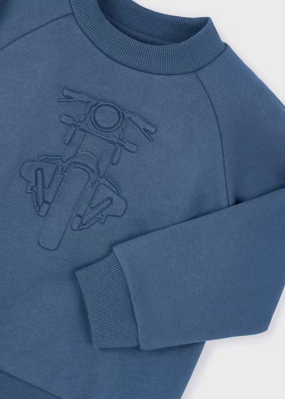 Felpa moto in rilievo per bambino. Girocollo con maniche lunghe e dettagli embossati.