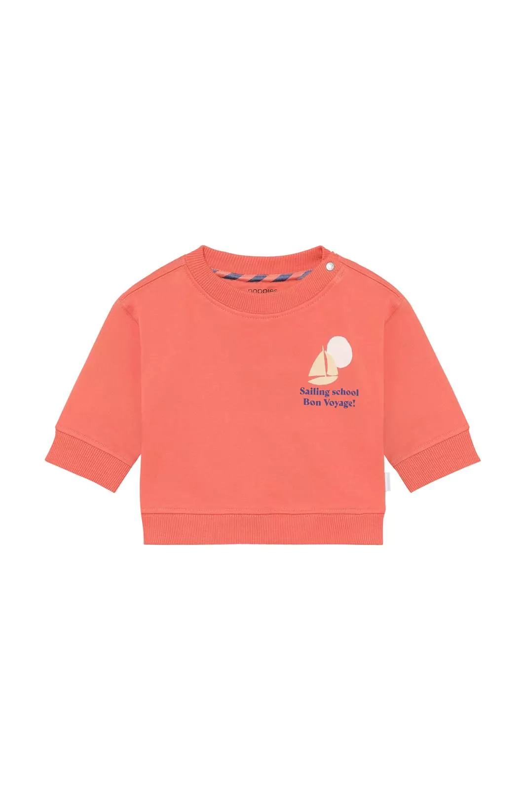 Felpa neonato Noppies in cotone biologico con stampa sul retro, bottoni a pressione e vestibilità comoda. Perfetta per ogni giorno.