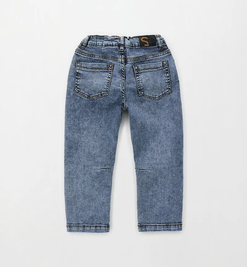 Capo perfetto per accompagnare i più piccoli in ogni momento della giornata. Realizzato in denim stretch lavaggio chiaro, offre un mix ideale di stile moderno e comfort assoluto.Il modello presenta una vestibilità slim fit, che segue la linea della gamba senza risultare costrittiva, valorizzando il look con un tocco contemporaneo. La vita elasticizzata garantisce una calzata pratica e confortevole, facilitando i movimenti e assicurando libertà durante il gioco e le attività quotidiane.Dotato di chiusura con bottone e zip, tasche anteriori e posteriori funzionali e dettagli di cuciture decorative sulle gambe, questo jeans si abbina facilmente a t-shirt, felpe o camicie per creare outfit casual e versatili.<br /> Perfetto per la scuola, il tempo libero o le occasioni informali, è un capo indispensabile nel guardaroba di ogni bambino.<br />