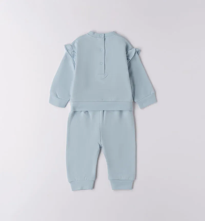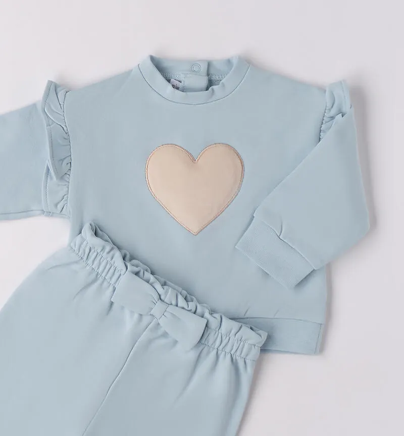 Tuta neonata Minibanda in felpa stretch invernale. Felpina con cuore e ruches, pantaloni con fiocco. Supporta Better Cotton.