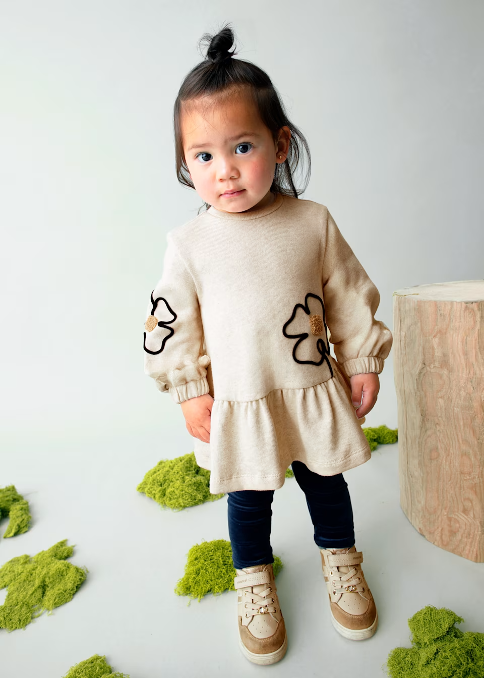 Vestito a manica lunga per neonata combina comfort e delicatezza, perfetto per ogni occasione. Realizzato in morbido cotone, presenta polsini elasticizzati, girocollo e una pratica chiusura con bottoni a pressione sul retro, che rende la vestizione semplice e veloce. Il modello è arricchito da un elegante riccio in vita, ricami decorativi e una dolce stampa floreale, ideale per un look romantico e raffinato.