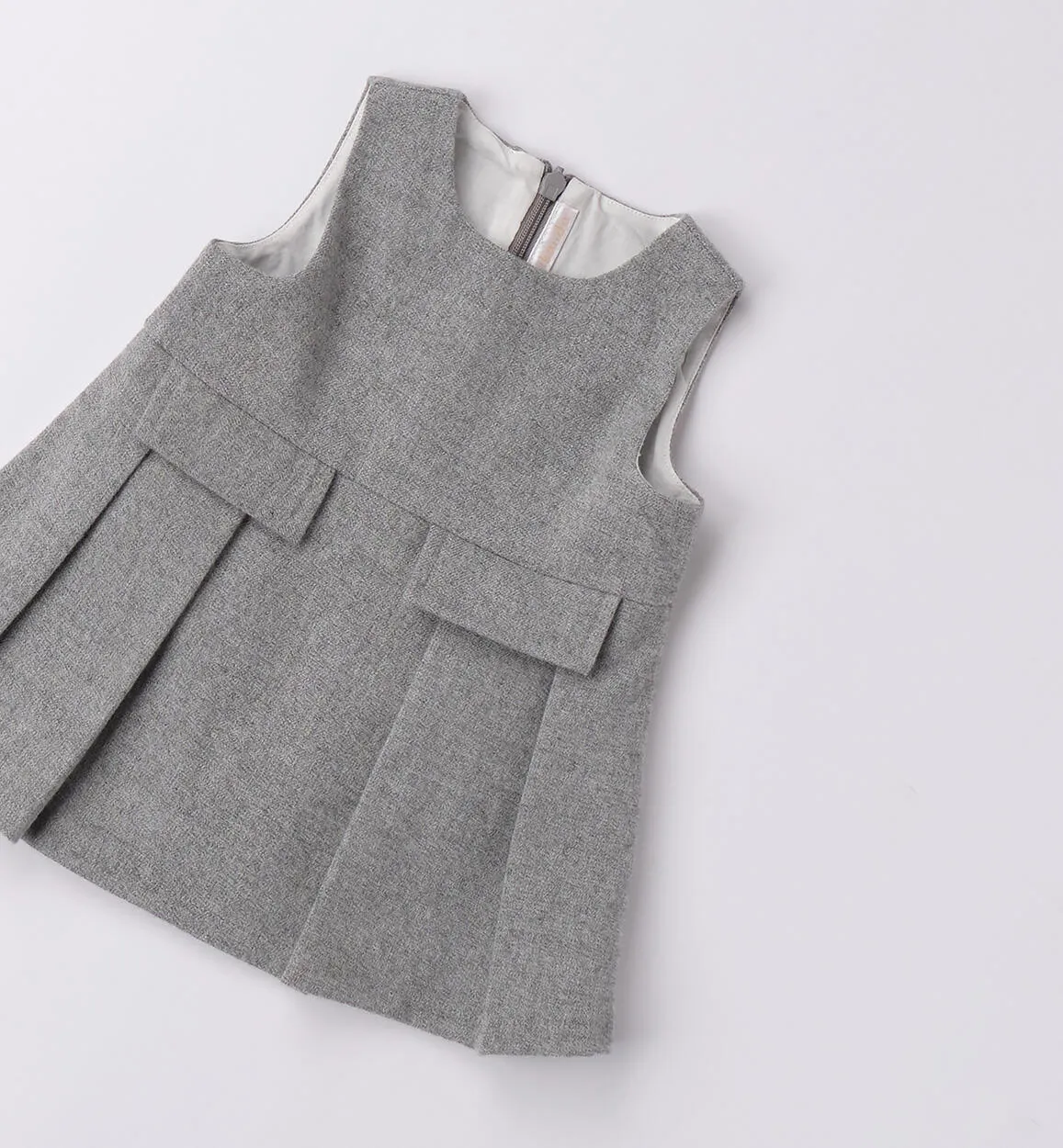 L'Abito Smanicato per Neonata Minibanda è un capo elegante e sofisticato, perfetto per ogni occasione speciale. Realizzato in twill manopesca, offre una sensazione di morbidezza unica, unita al comfort di una fodera interna interamente in cotone. Il colore grigio scuro melange conferisce un look raffinato. Il modello ha una lunghezza sopra al ginocchio e presenta una pratica zip invisibile sul retro per una vestizione discreta e veloce. Un connubio perfetto tra stile, eleganza e delicatezza sulla pelle.